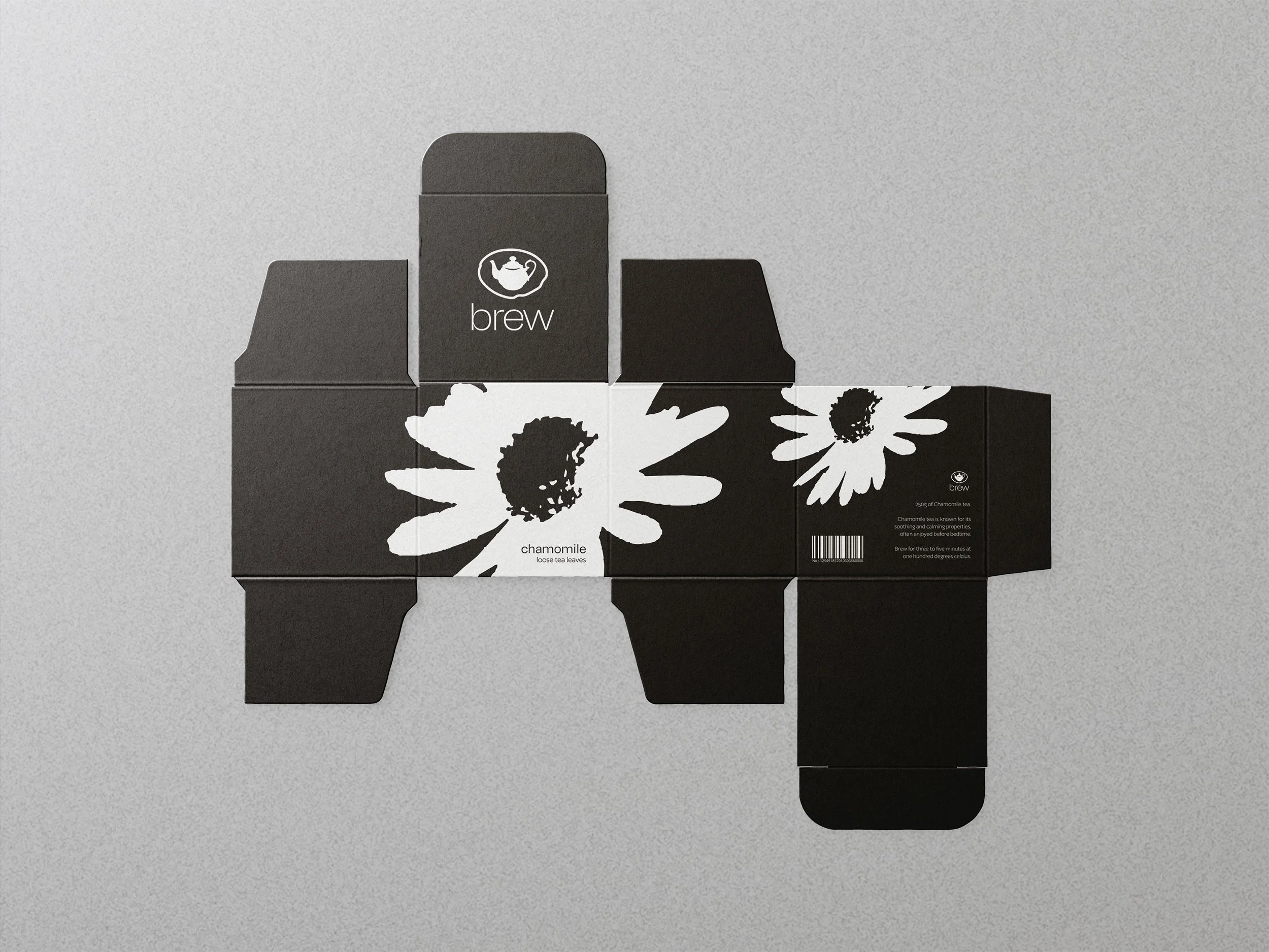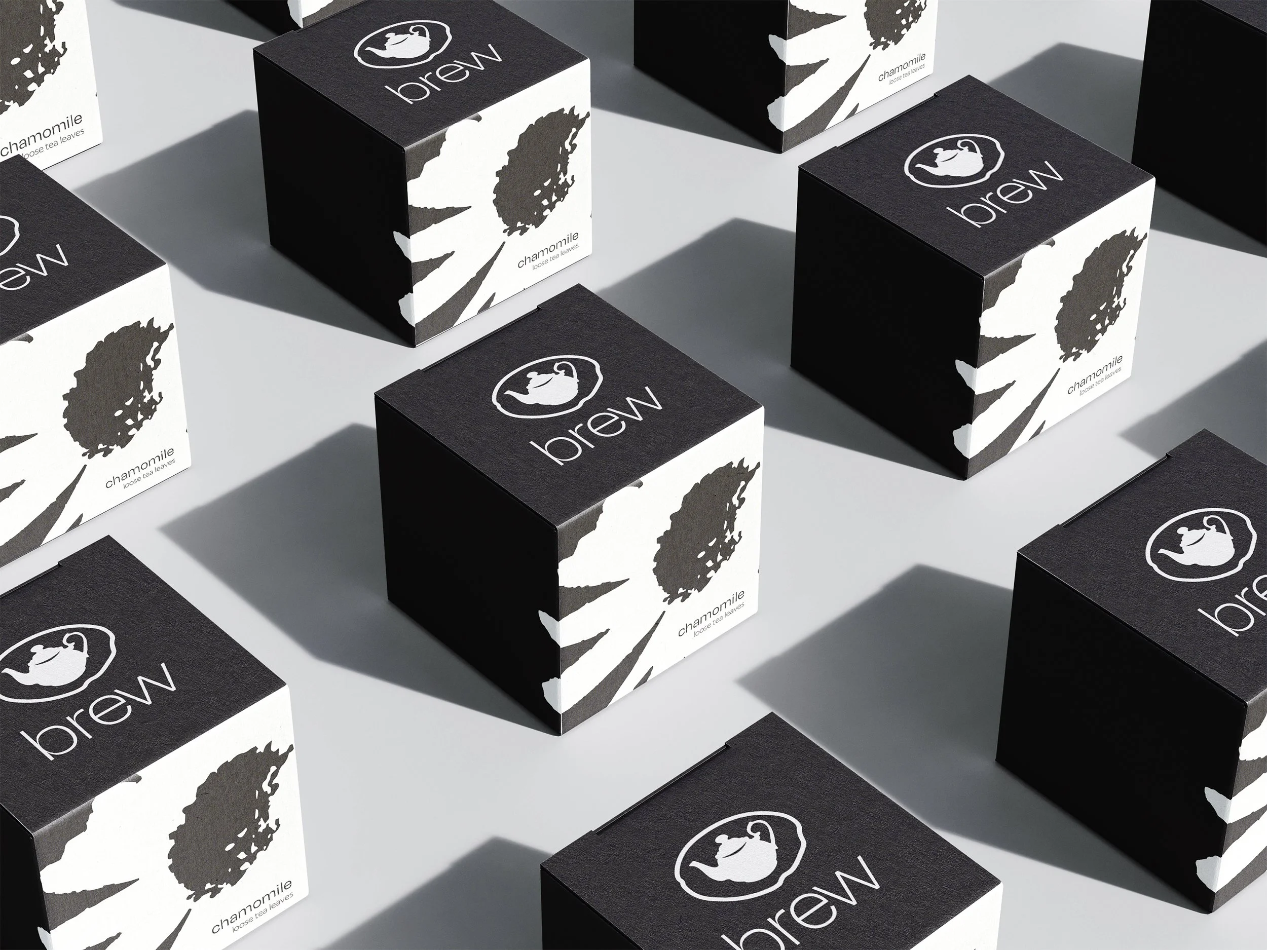 This project involved designing packaging for brew, a contemporary tea brand that balances simplicity with bold visual impact. The boxes feature striking black and white graphic flora, creating a refined yet eye-catching presence on the shelf.